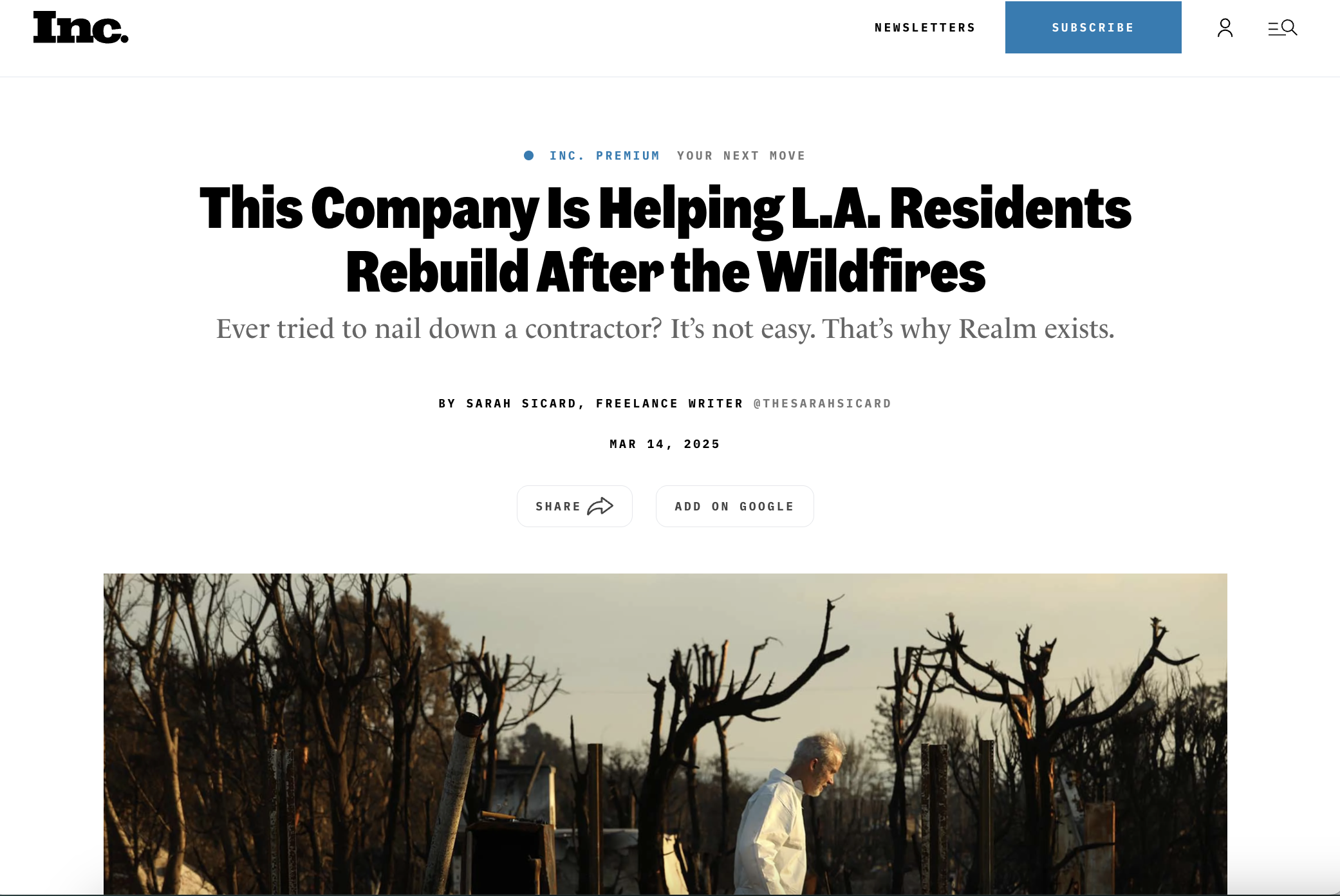 I led the brand, communications, and content strategy, as well as execution. We positioned Realm as a reliable rebuilding resource through a mix of free educational content and the company’s full-service offering. The work included launching a homeowner resource hub with actionable rebuilding guides, hosting an in-person community event, and developing landing pages, email, and social campaigns, as well as media outreach. The effort resulted in national press coverage in Inc. Magazine and Entrepreneur, along with qualified leads, conversions, and referrals.